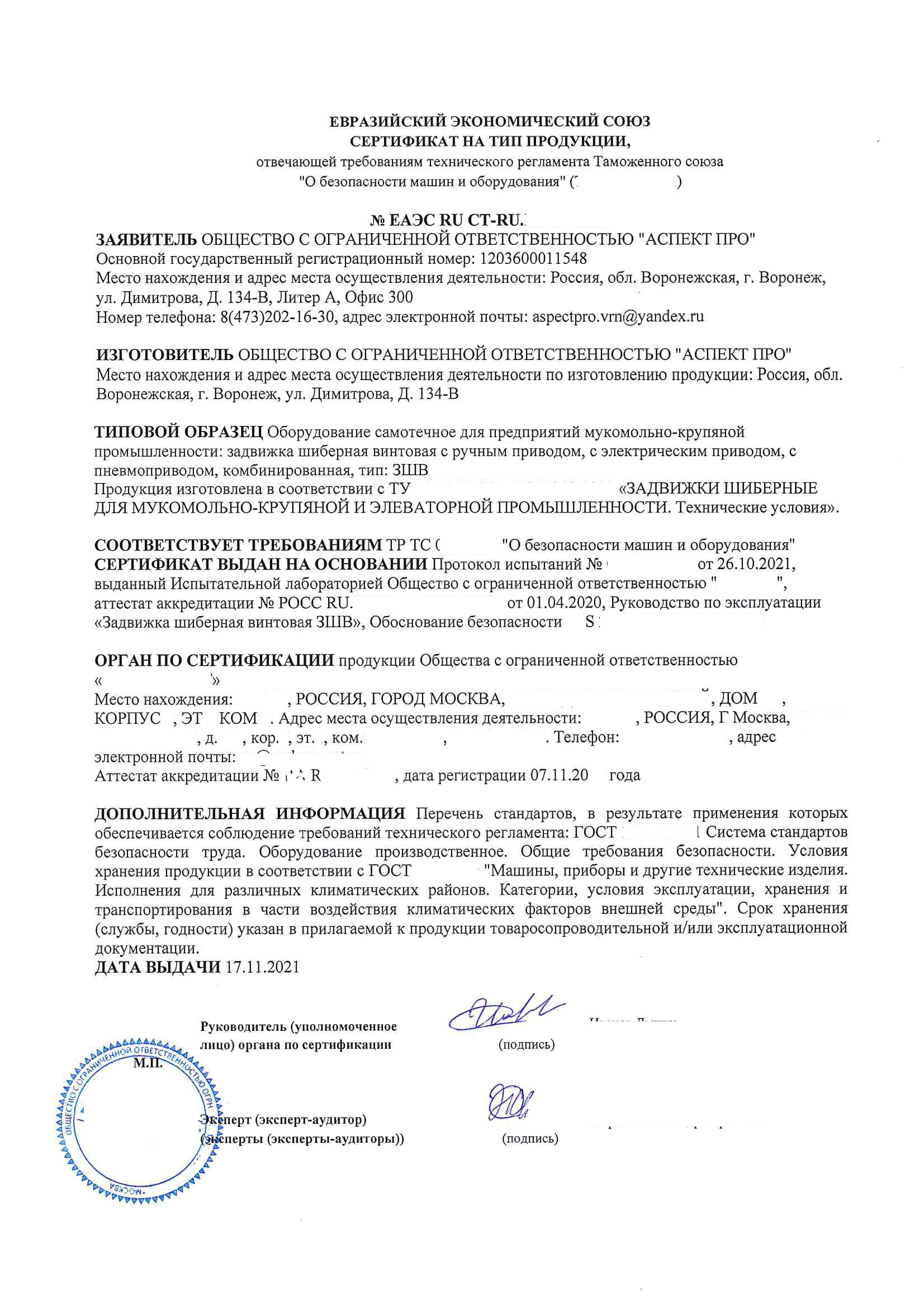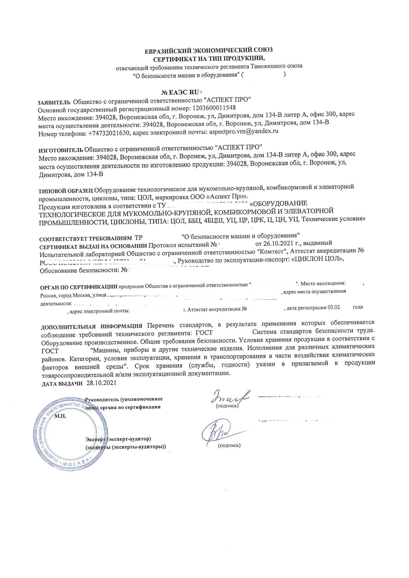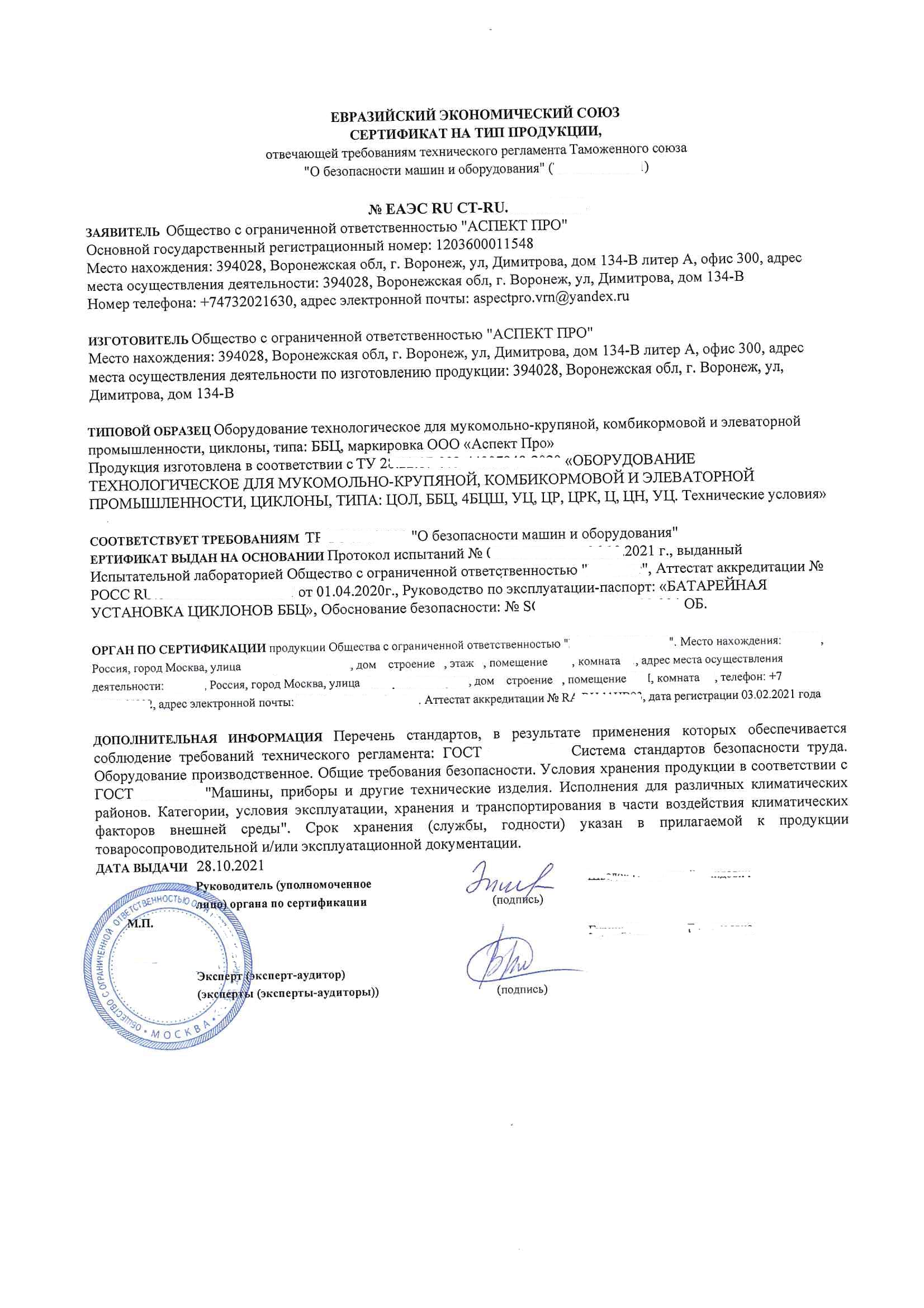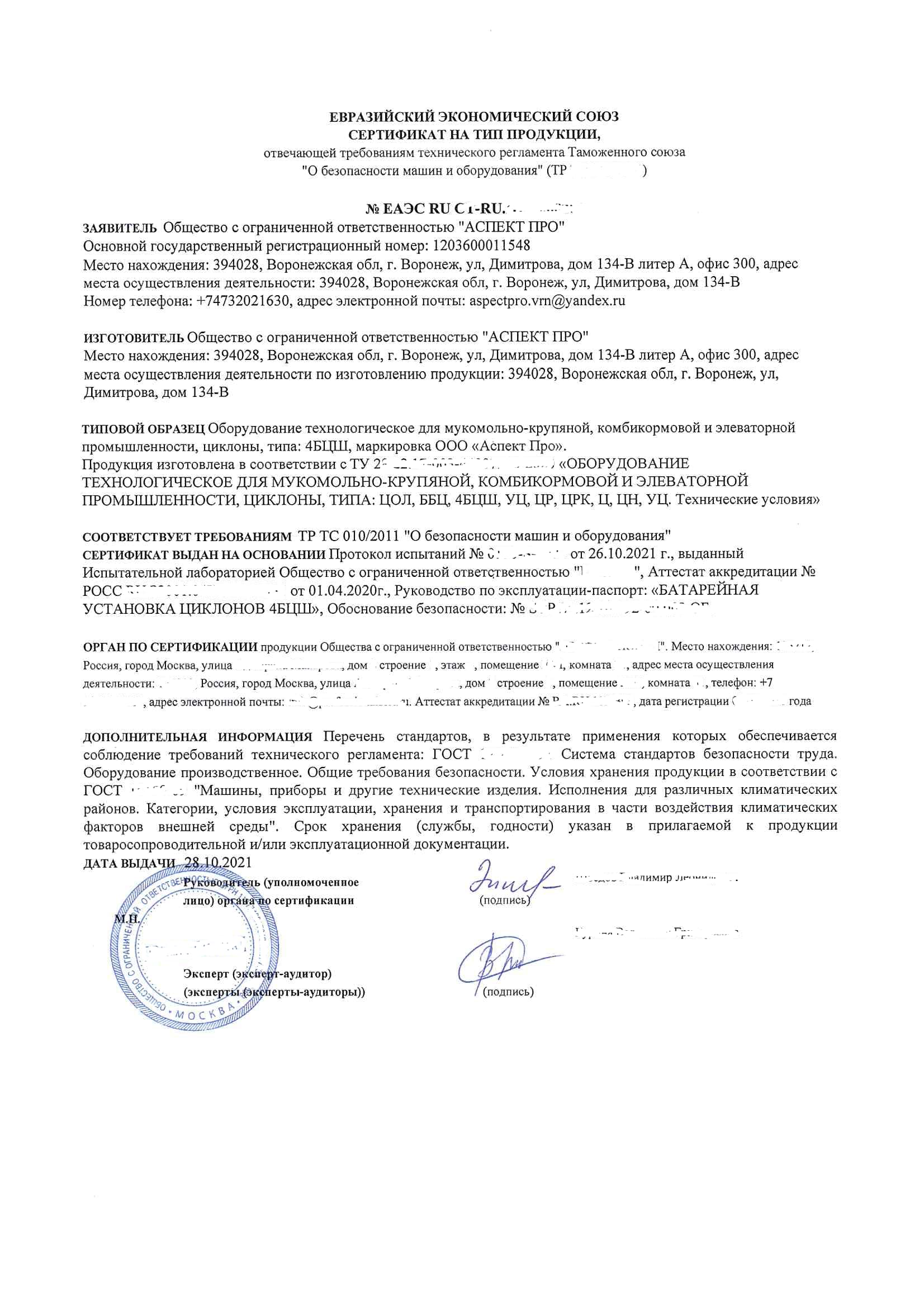 - сертификаты соответствия по схеме 5Д на производимую и поставляемую продукцию.