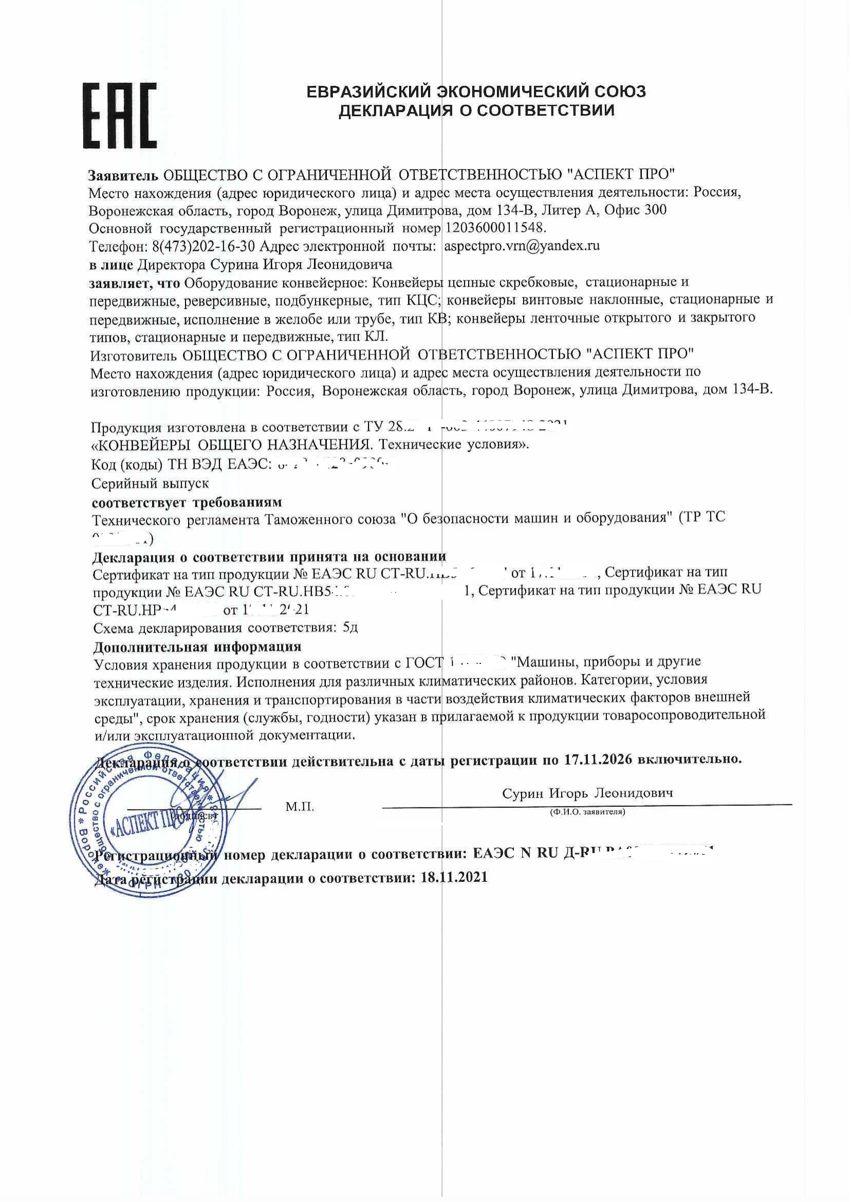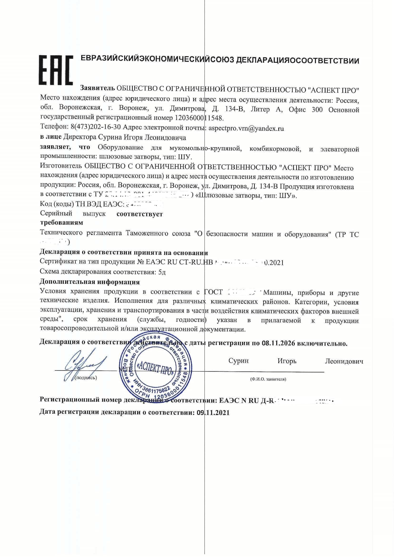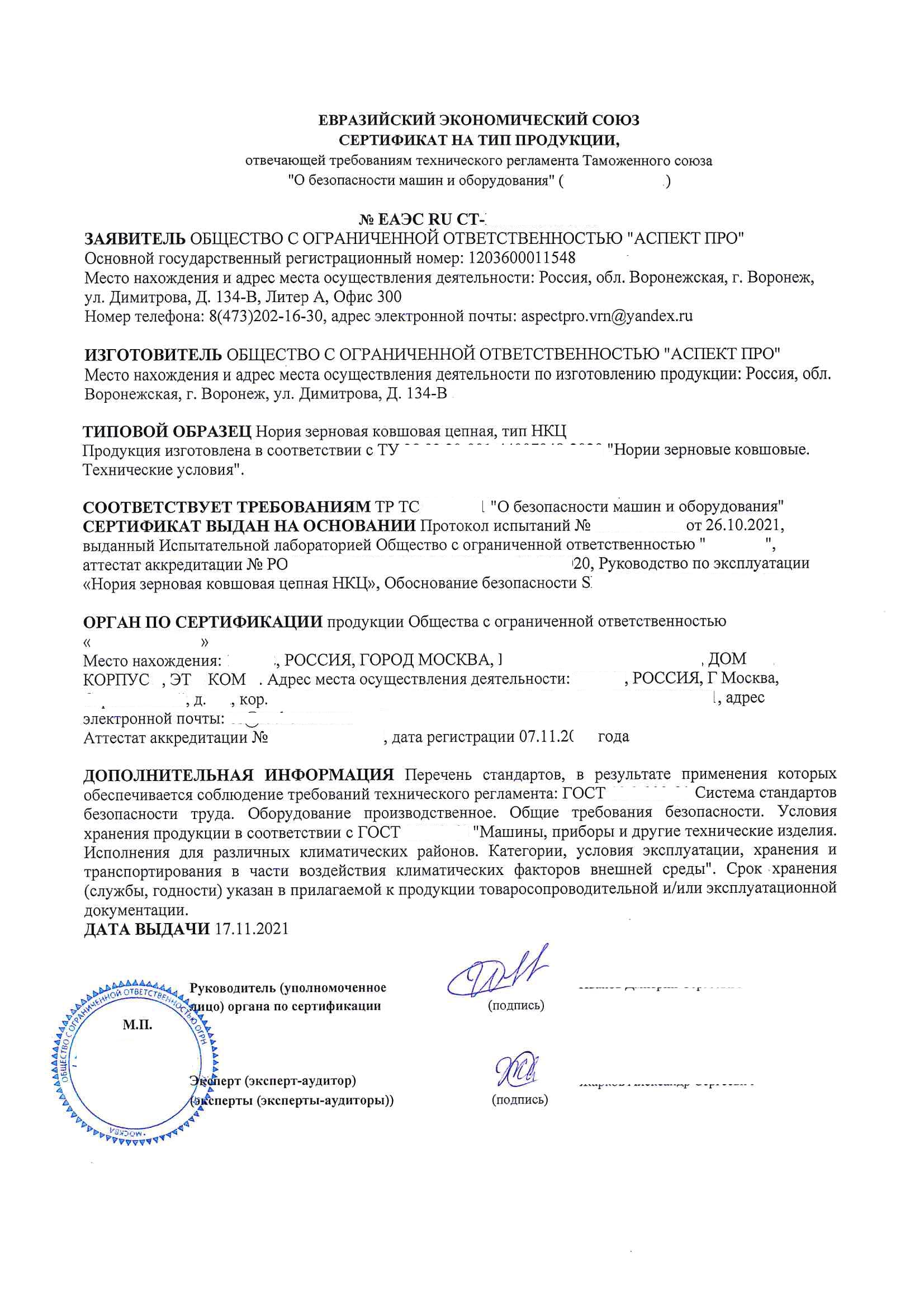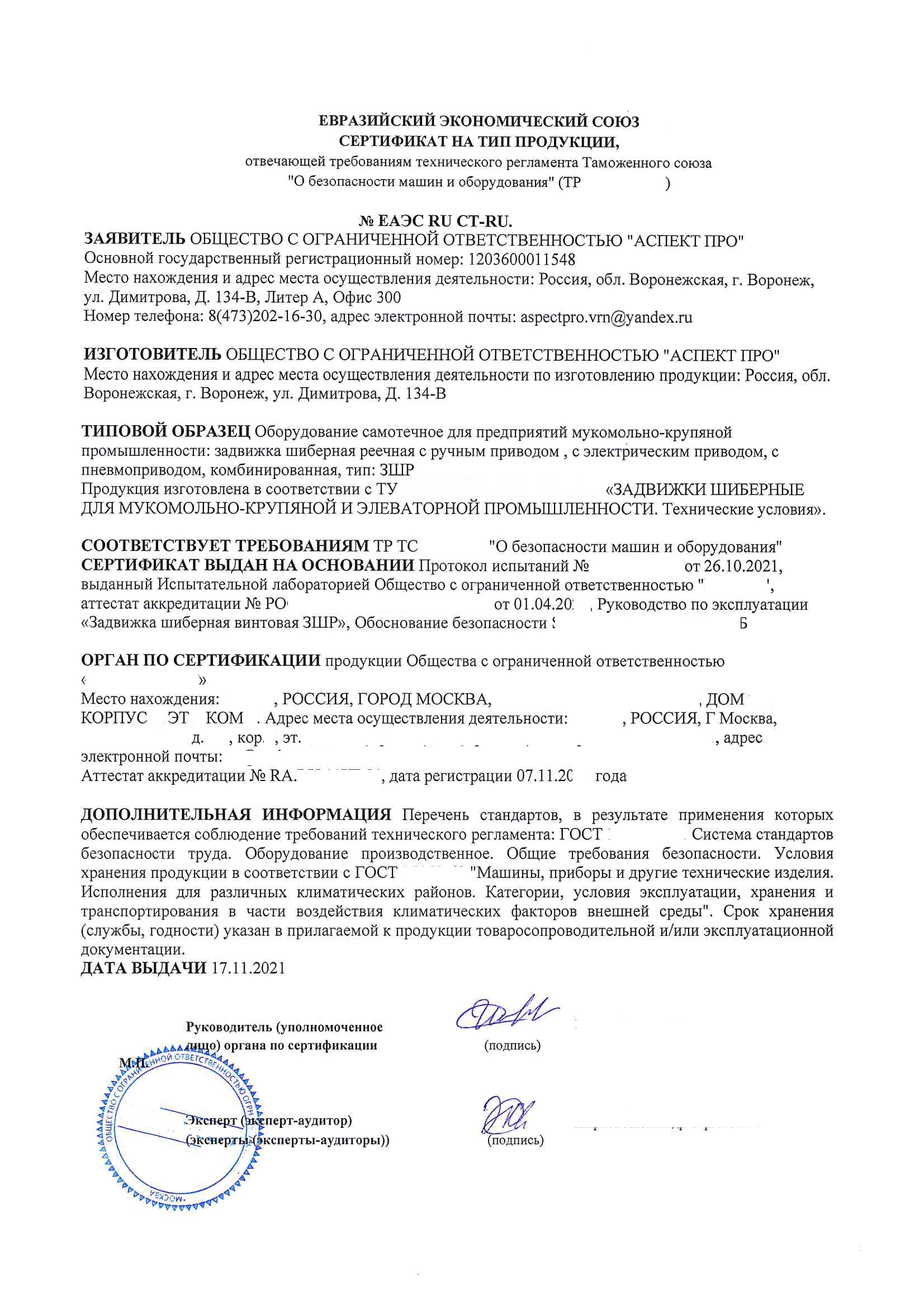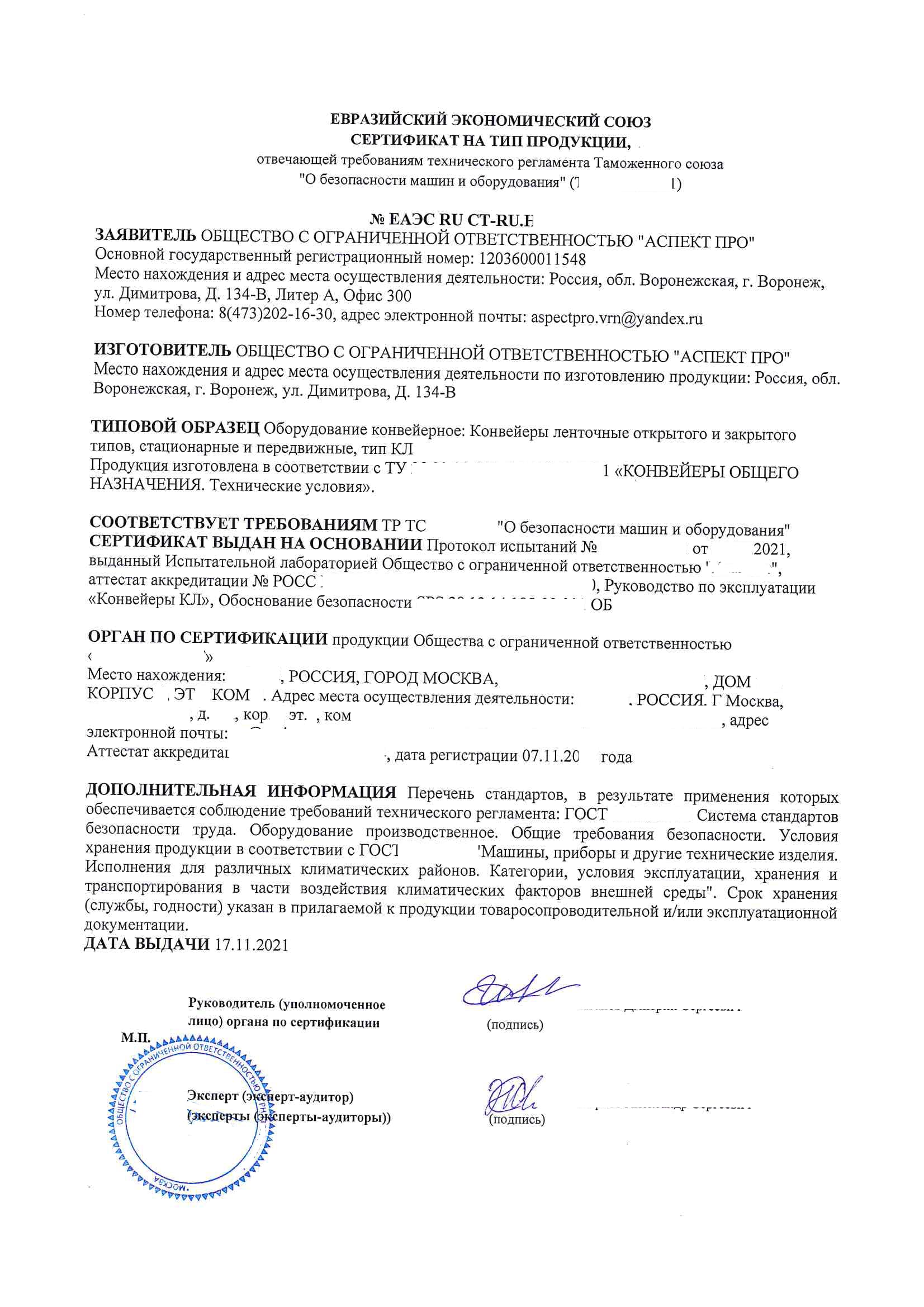 - сертификаты соответствия по схеме 5Д на производимую и поставляемую продукцию.