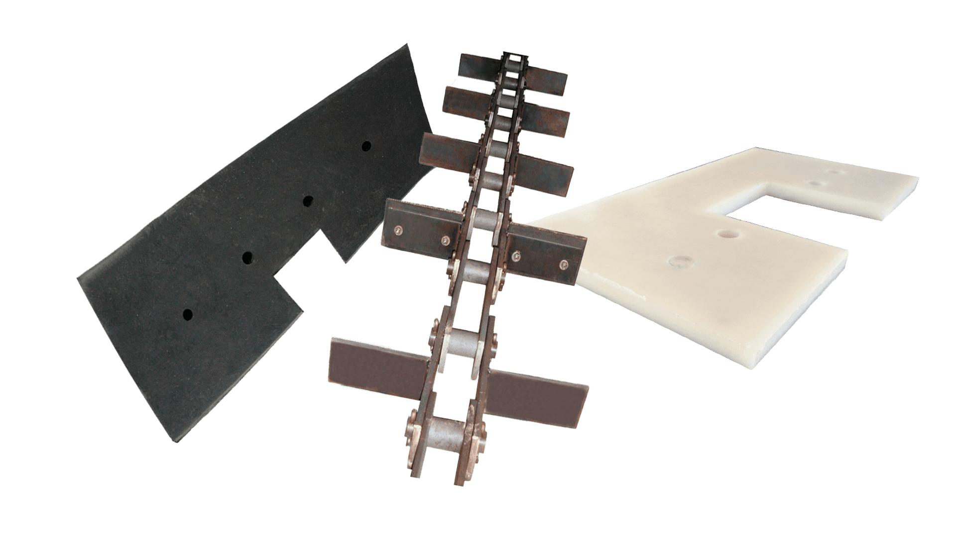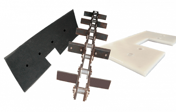 - направляющие для цепей обеспечивают плавное движение конвейерной цепи и предотвращают ее смещение или застревание. Они могут быть изготовлены из различных материалов, включая металл, пластик или резину;