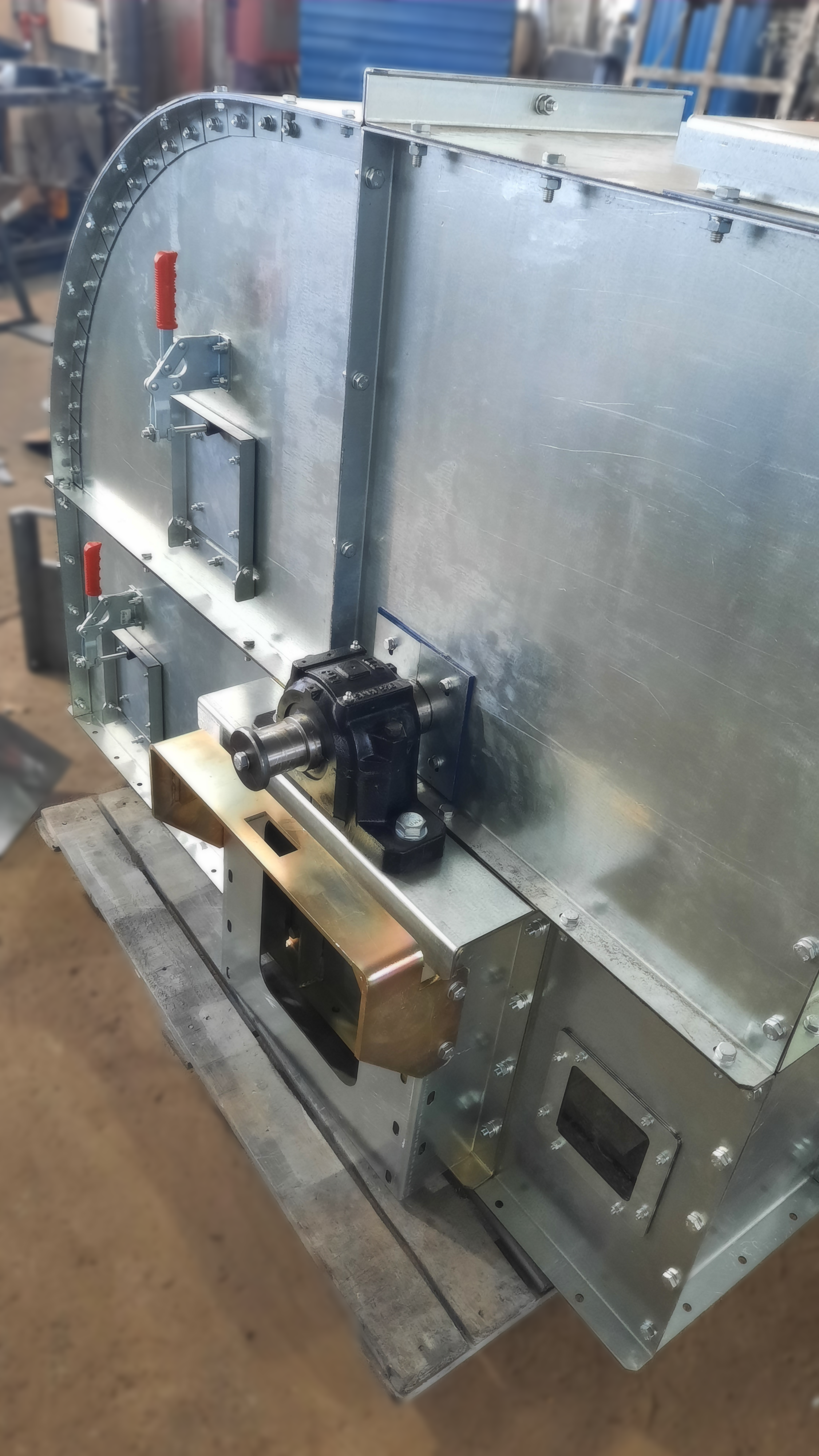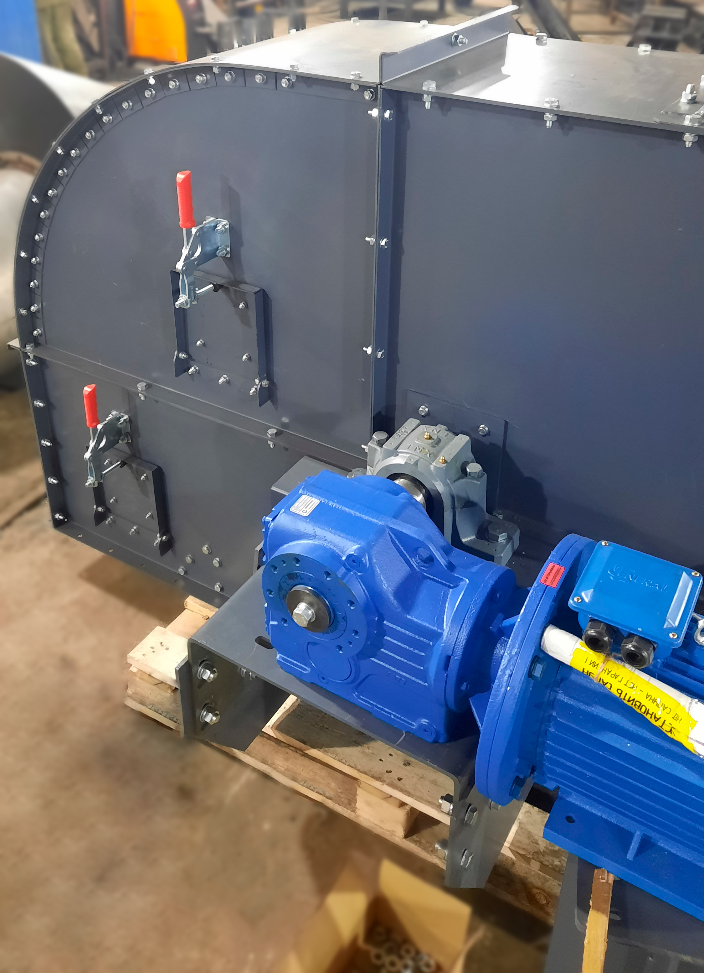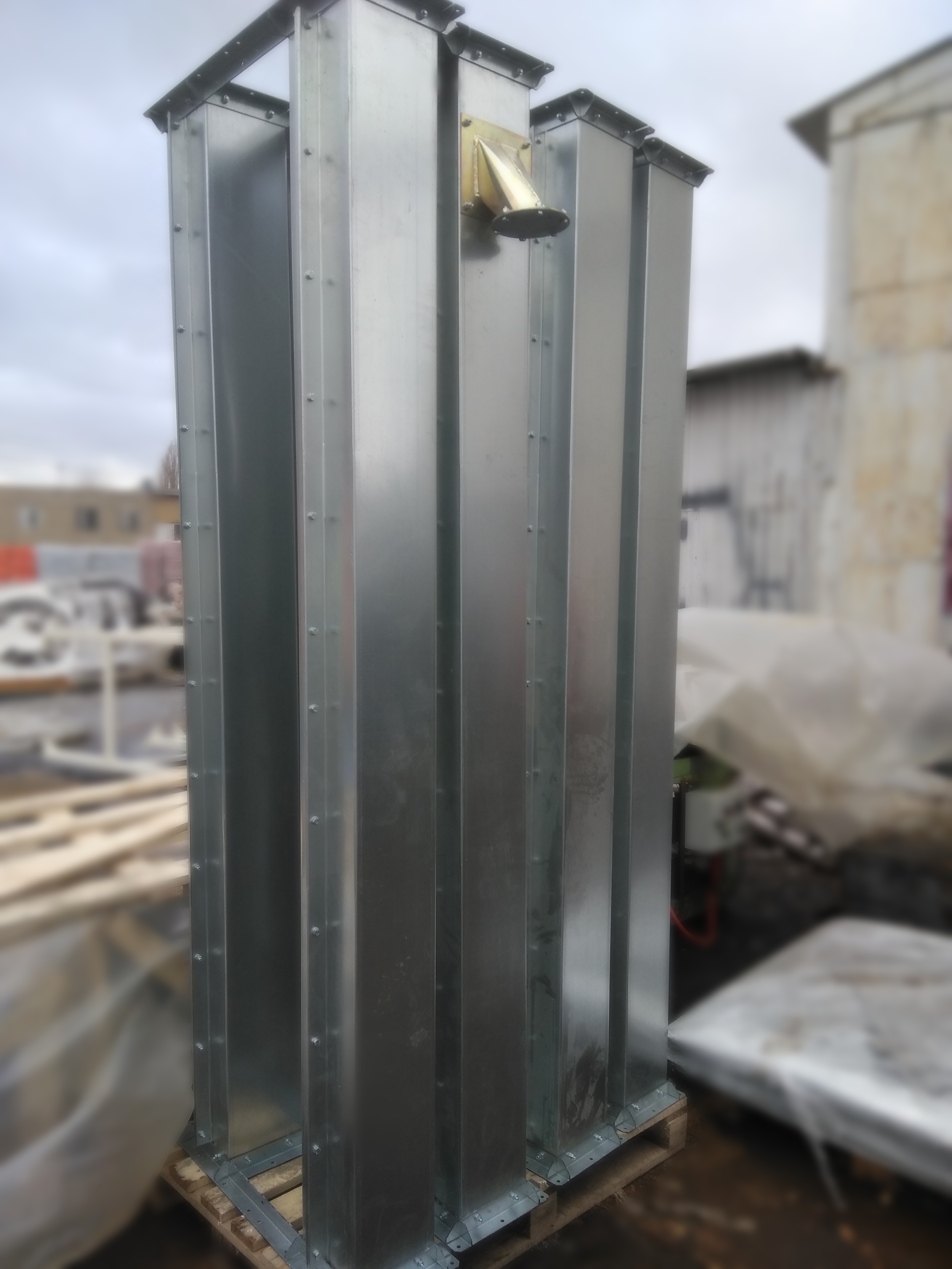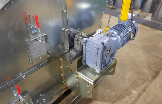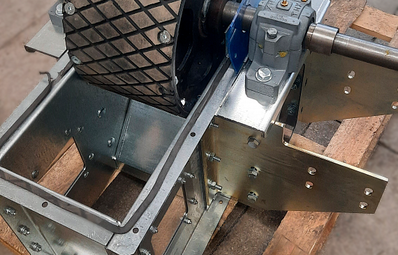 - При установке нории на улице на голове нории изготавливается откидной взрыворазрядитель, в помещении - переход на взрыворазрядитель. Как дополнительная опция возможно изготовление взрыворазрядного устройства с отводящими трубами при установке нории в помещении с выдачей паспорта взрыворазрядного устройства.
