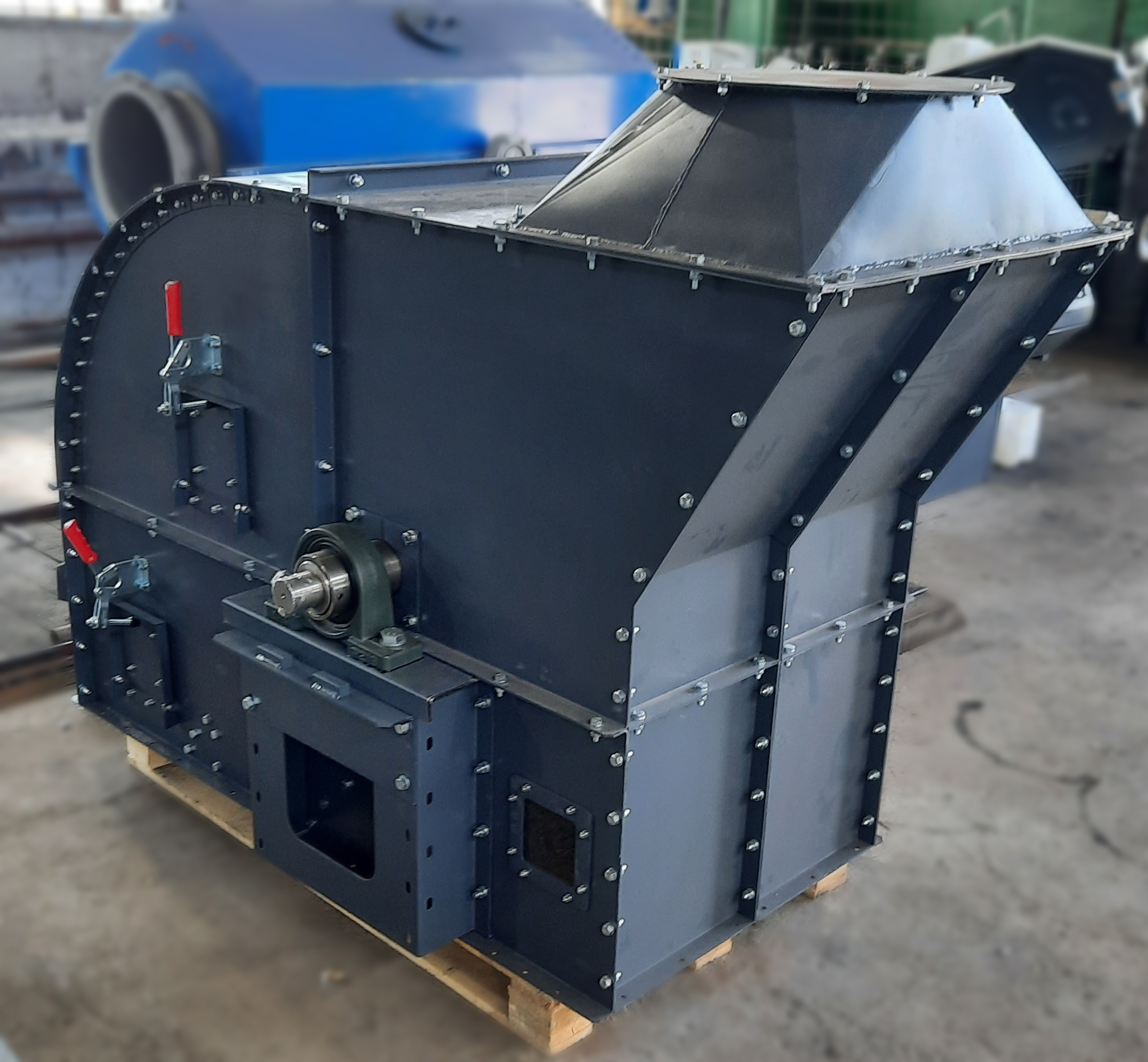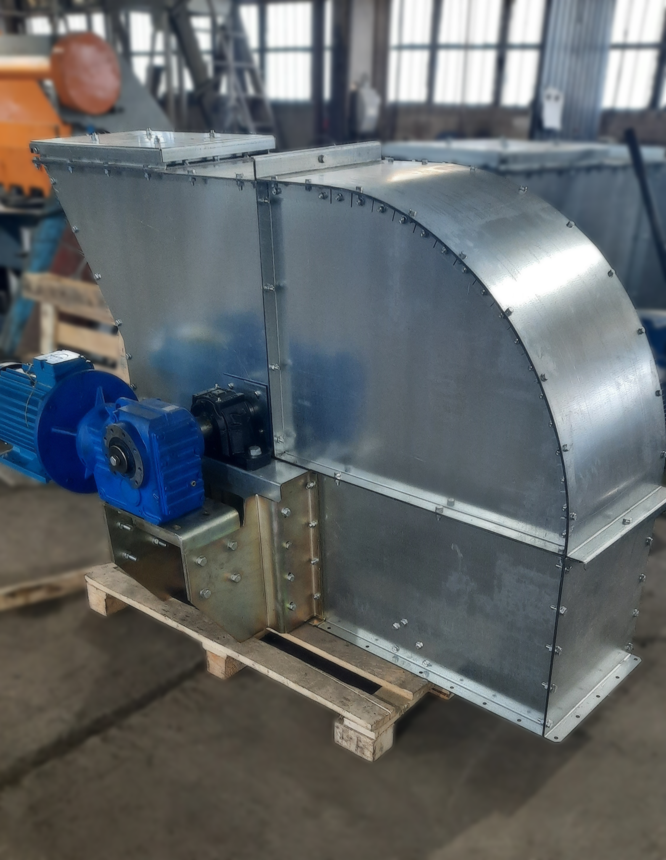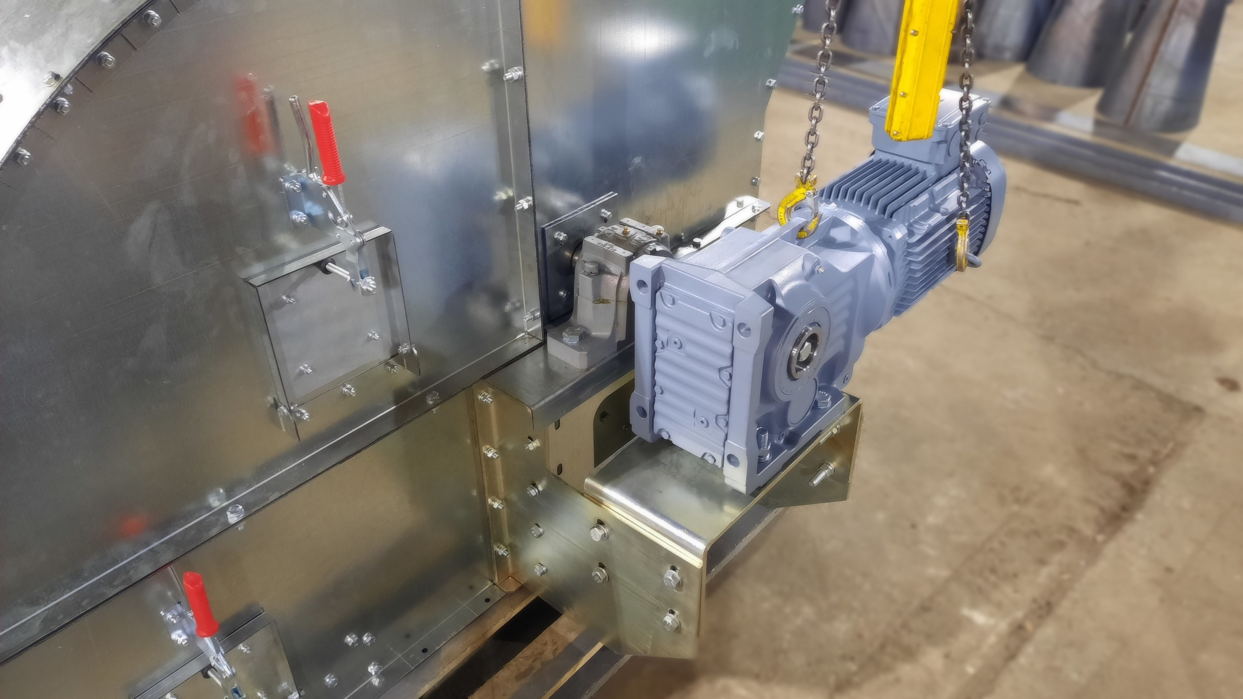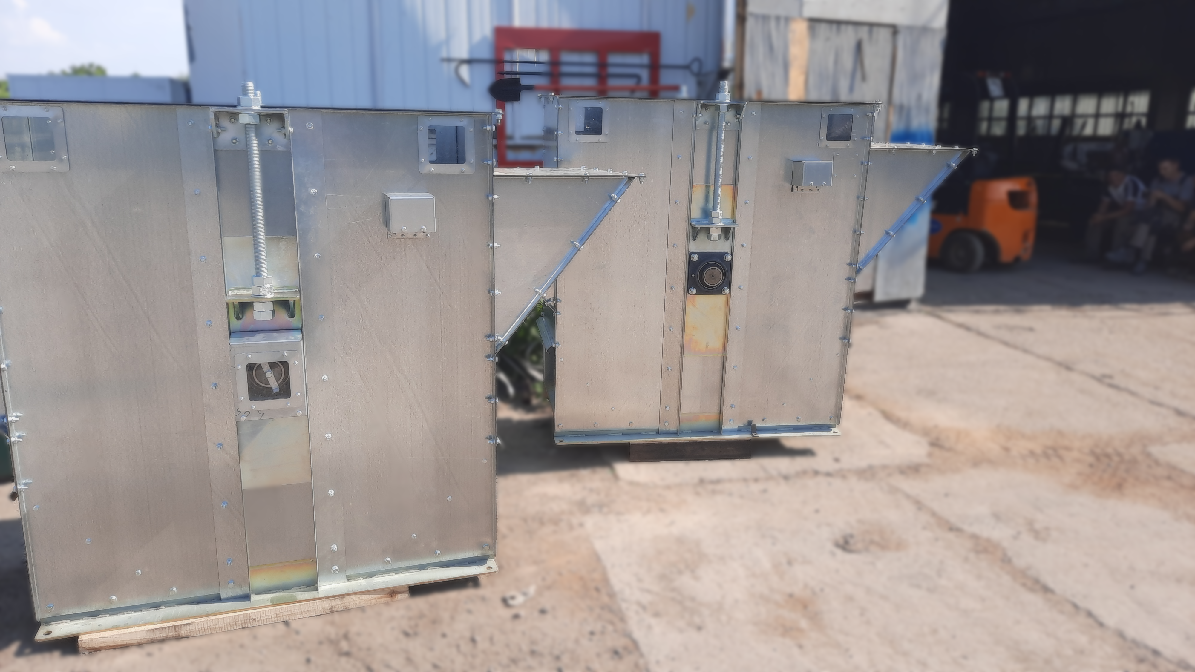 - При установке нории на улице на голове нории изготавливается откидной взрыворазрядитель, в помещении - переход на взрыворазрядитель. Как дополнительная опция возможно изготовление взрыворазрядного устройства с отводящими трубами при установке нории в помещении с выдачей паспорта взрыворазрядного устройства.
